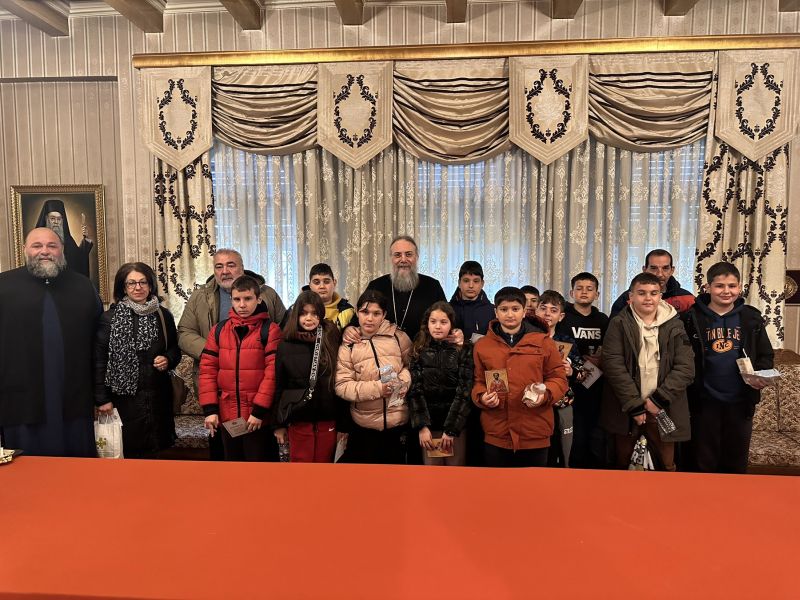 Στη συνέχεια, επισκέφθηκαν τον Σεβασμιώτατο μαθητές της Ε΄ και ΣΤ΄ τάξης του Δημοτικού Σχολείου Γόμφων, συνοδευόμενοι από τον Διευθυντή και τους δασκάλους τους.