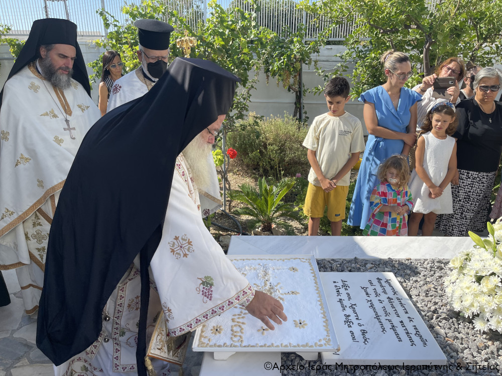 Στο τέλος της Θ. Λειτουργίας ο Σεβασμιώτατος Ιεραπύτνης μίλησε για την Ευαγγελική περικοπή της ημέρας και υπογράμμισε ότι ο αοίδιμος Γέροντας Αναστάσιος, ως Ιερομόναχος απαρνήθηκε τον εαυτό του, σήκωσε τον σταυρό του και ακολούθησε τον Χριστό, σύμφωνα με τήν προτροπή του Κυρίου μας Ι. Χριστού, και έγινε τύπος και υπογραμμός για όλους όσοι είχαμε την ευλογία να τον γνωρίσουμε και να τον συναναστραφούμε. Και κατέληξε με την ευχή ο Αρχιποίμην Κύριός μας, με τις ακοίμητες πρεσβείες της Υπεραγίας Θεοτόκου, την οποία τόσο πολύ αγαπούσε και τιμούσε, να τον καταστήσει Λειτουργό και στο Επουράνιο Θυσιαστήριο, απ’όπου θα εύχεται για τη Γερόντισσα Χριστονύμφη, τις Μοναχές και όλους τους ευλαβείς προσκυνητές του Ι. Ησυχαστηρίου.