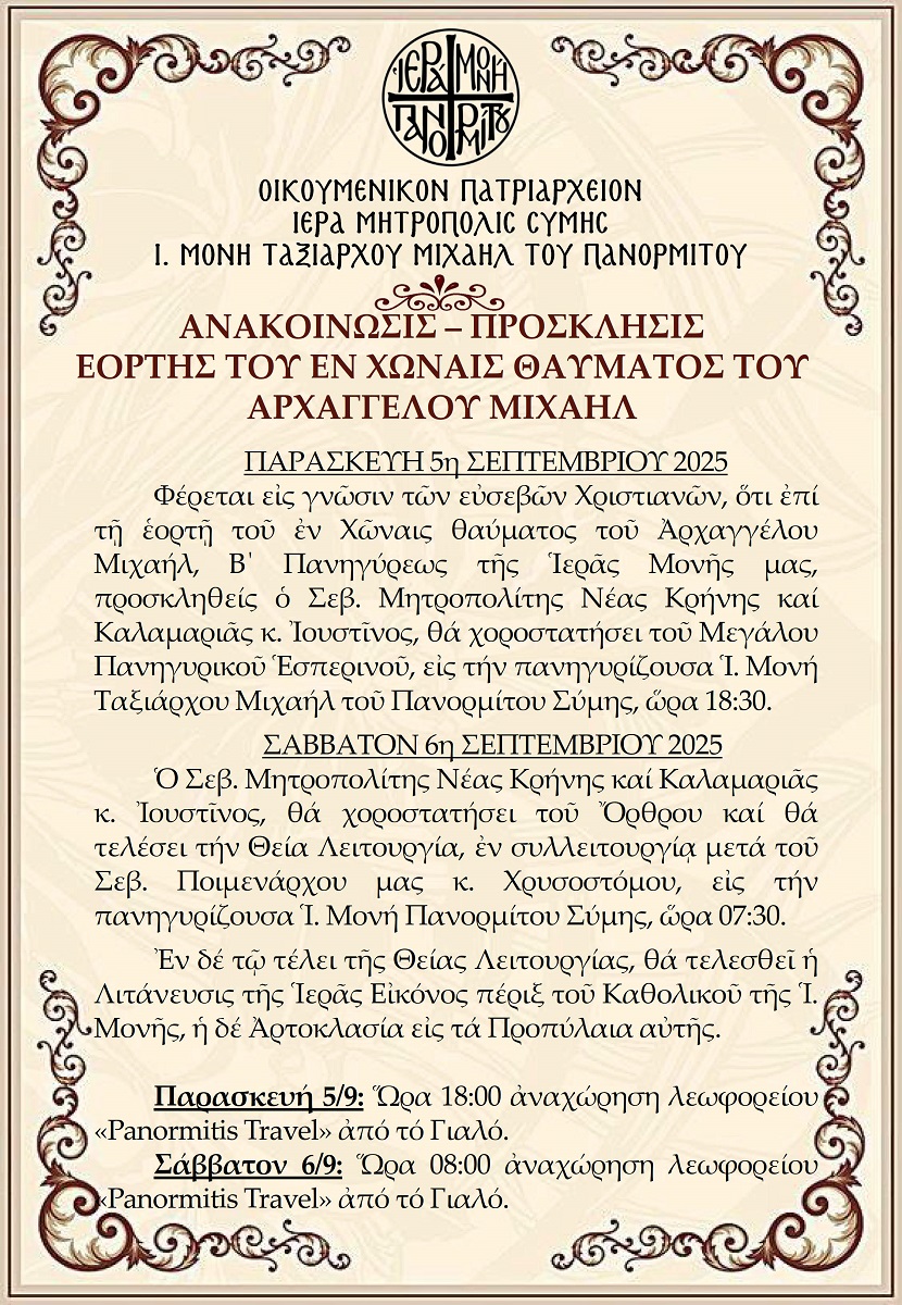 Το “εν Χώναις” θαύμα του Αρχαγγέλου Μιχαήλ στη Μητρόπολη Σύμης ΕΛΛΑΔΑ, ΜΗΤΡΟΠΟΛΕΙΣ 03.09.2025 | 17:17