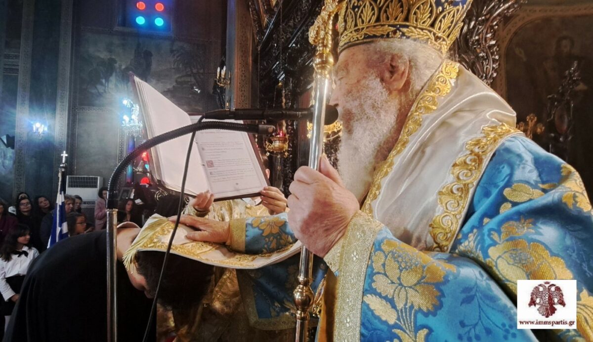 Πριν το πέρας της Θείας Λειτουργίας, ο Σεβ. Ποιμενάρχης μας χειροθέτησε Αναγνώστη έναν ευσεβή νέο του Καστορείου, τον Δημοσθένη Σμυρνιό, μαθητή της Α΄ Λυκείου. Ο Σεβασμιώτατος μίλησε με επαινετικά λόγια τόσο για την οικογένεια του νέου Αναγνώστη, όσο και για τον ίδιο, ενώ του ευχήθηκε να συνεχίσει με τον ίδιο ζήλο στον ωραίο δρόμο της αρετής και της μάθησης.