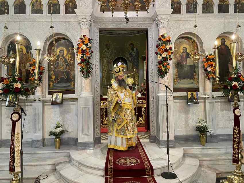 Επίσης ο Θεοφιλέστατος μετέφερε τις ευχές και τις ευλογίες του Σεβασμιωτάτου Ποιμενάρχου μας κ. Διονυσίου στους Άρχοντες, στον Κλήρο και στο Λαό της πόλεως του Ξυλοκάστρου που με την αθρόα συρροή τους τιμούν κατ᾽ έτος τον Πολιούχο τους Άγιο.
