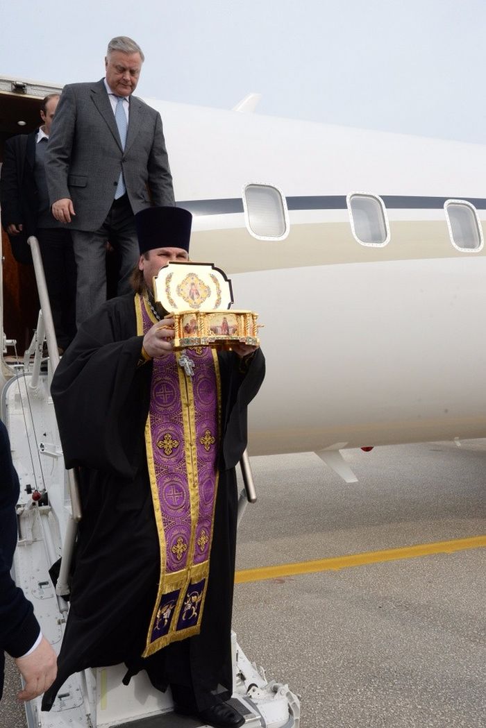 Το ιερό Λείψανο συνόδευσαν από τη Ρωσία στην Ελλάδα, η Ηγουμένη Ευσεβία, ο Πρωθιερεύς Σέργιος, ο Ιερεύς Γρηγόριος, ο Πρόεδρος του Ιδρύματος « Άγιος Ανδρέας» κ. Βλαντιμίρ Γιακούνιν, ο υπεύθυνος του εν Αθήναις Γραφείου του Ιδρύματος κ. Σεργκέι Γκολοβίν και άλλα υψηλόβαθμα στελέχη εκ Ρωσίας.