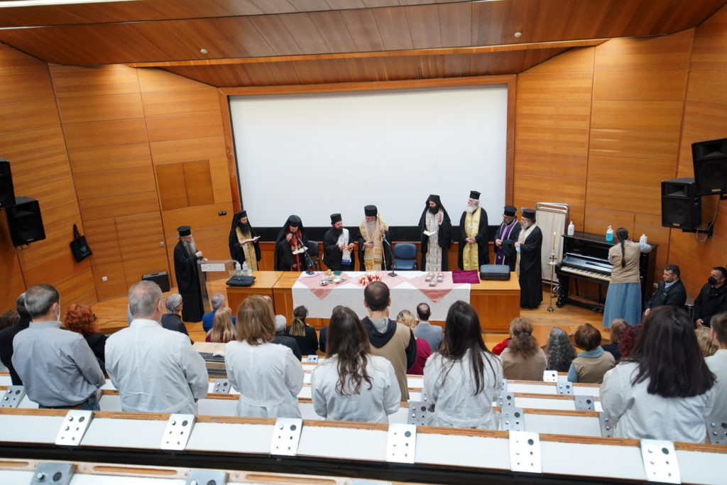 «Εδώ πραγματώνεται όλο το ανθρώπινο δράμα, αλλά ταυτόχρονα, μέσα από την δική σας συμπαράσταση, αγάπη και στοργή, γίνεται πιο μεγάλη η δύναμη για την υπομονή αυτής της δοκιμασίας», είπε αρχικά στον σύντομο χαιρετισμό του ο Σεβασμιώτατος απευθυνόμενος προς το ιατρικό, νοσηλευτικό και διοικητικό προσωπικό του νοσοκομείου. Επισημαίνοντας πως όλοι οι παράγοντες του χώρου της ιατρικής «είναι συνκυρηναίοι στο σταυρό του μαρτυρίου τον οποίο φέρουμε μέσα στον κόσμο της φθοράς που βρισκόμαστε», τόνισε πως «σας αξίζουν η ευγνωμοσύνη μας , η προσευχή μας, η βαθιά εκτίμηση στο έργο και την προσφορά σας».