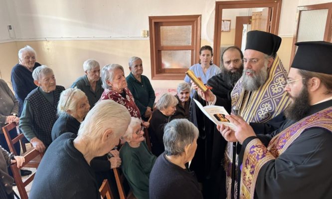 Ο Σεβασμιώτατος ομίλησε επικαίρως στους γέροντες και γερόντισσες και τους έχρισε με το Αγιασμένο έλαιο προς πνευματική ενίσχυση και ίαση ψυχής και σώματος.