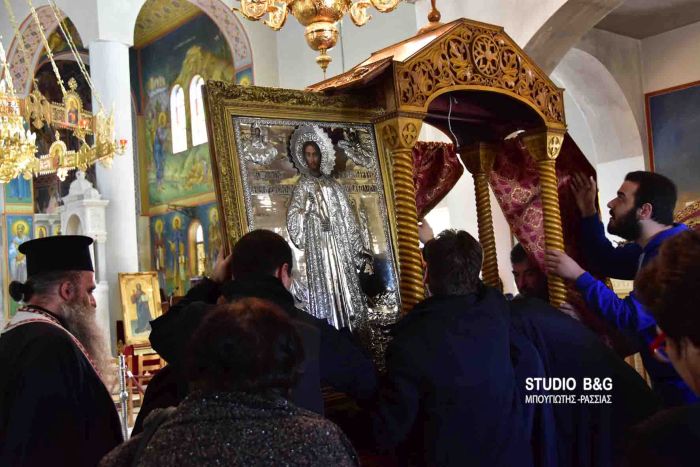 Σε μια σεμνή τελετή ο Ιερέας του ναού της παναγίας π. Διονύσιος Ταμπάκης παρέδωσε την Ιερή εικόνα στον Ιερέα του νέου ναού του Αγίου Αναστασίου , π. Μάρκο Σούλτσε . Η μεταφορά έγινε τιμητικά με όχημα της Αστυνομίας και την συνοδεία ανδρών της ομάδας Δίας. Η εικόνα μετά την μεταφορά της τοποθετήθηκε σε ειδικό κουβούκλιο και τέθηκε προς προσκύνηση. Το απόγευμα της παραμονής θα τελεστεί Μέγας Πολυαρχιερατικός Εσπερινός χοροστατούντων του Σεβασμιωτάτου Μητροπολίτου Αργολίδας κ. Νεκταρίου και λοιπών Αρχιερέων.