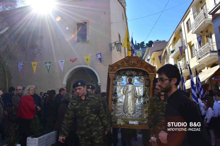 Την εικόνα συνόδευε άγημα του ΚΕΜΧ και η Φιλαρμονική του Δήμου. Στον εορταστικές εκδηλώσεις παρέστησαν οι βουλευτές Αργολίδος Γ.Γκιόλας, Γ.Μανιάτης και Γ.Ανδριανός ,ο αντιπεριφερειάρχης Αργολίδος Α.Χειβιδόπουλος ,ο θεματικός αντιπερειφεριάρχης Β.Σιδέρης , ο δήμαρχος Ναυπλιέων Δ.Κωστούρος, ο επικεφαλής της αντιπολίτευσης του Δήμου Ναυπλιέων Χρ .Γραμματικόπουλος και πλήθος κόσμου.