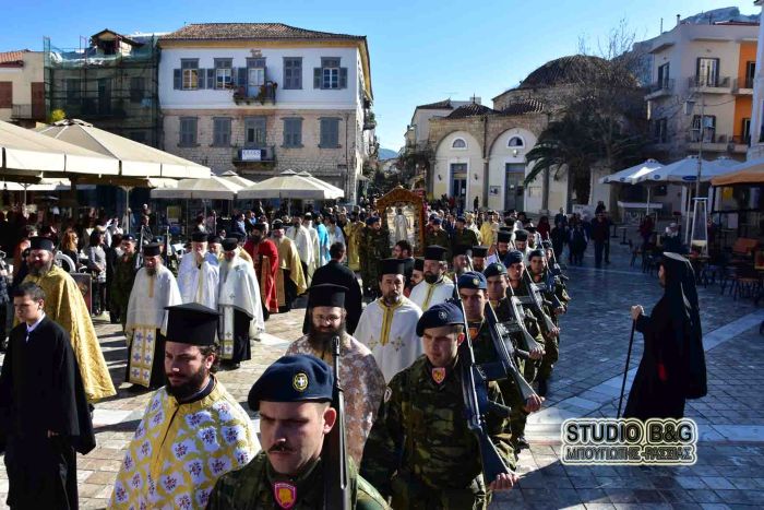 Την εικόνα συνόδευε άγημα του ΚΕΜΧ και η Φιλαρμονική του Δήμου. Στον εορταστικές εκδηλώσεις παρέστησαν οι βουλευτές Αργολίδος Γ.Γκιόλας, Γ.Μανιάτης και Γ.Ανδριανός ,ο αντιπεριφερειάρχης Αργολίδος Α.Χειβιδόπουλος ,ο θεματικός αντιπερειφεριάρχης Β.Σιδέρης , ο δήμαρχος Ναυπλιέων Δ.Κωστούρος, ο επικεφαλής της αντιπολίτευσης του Δήμου Ναυπλιέων Χρ .Γραμματικόπουλος και πλήθος κόσμου.
