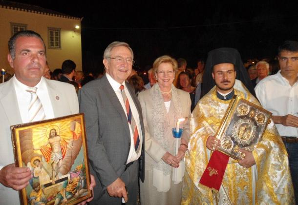 Ο Κωνσταντίνος εκκλησιάστηκε στον Μητροπολιτικό Ναό του Αγίου Νικολάου Σπετσών όπου έτυχε θερμής υποδοχής από τον εφημέριο Αρχιμανδρίτη Γρηγόριο Νανακούδη.