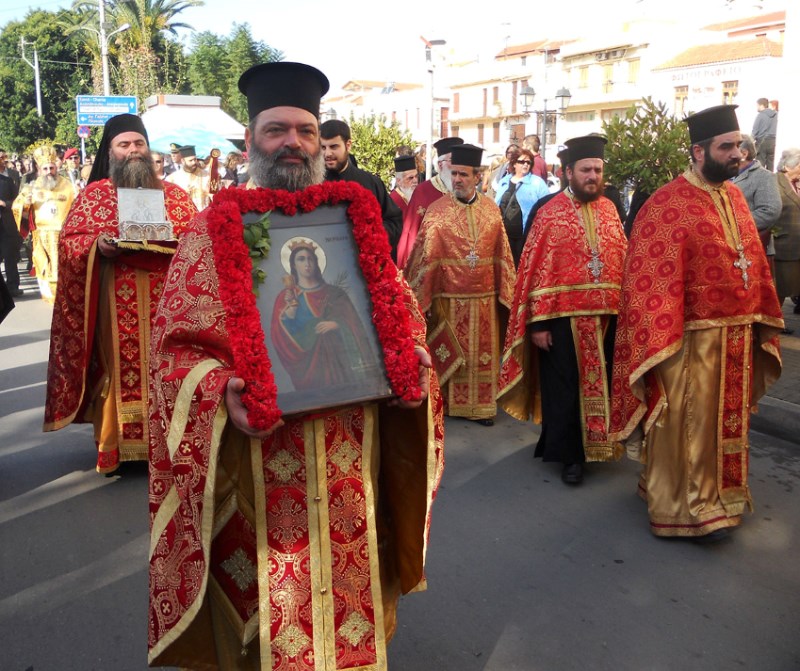 Μετά το πέρας της θείας λειτουργίας, ακολούθησε η καθιερωμένη λιτάνευση της εικόνας και του λειψάνου της αγίας Βαρβάρας.