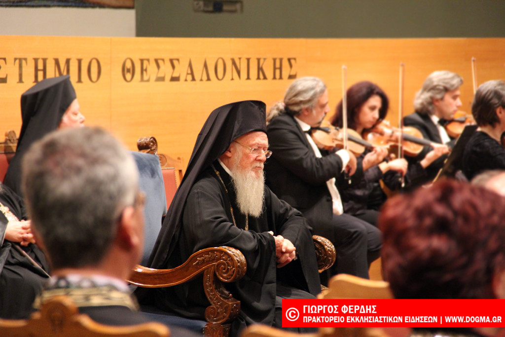 Κάτω από δρακόντεια μέτρα ασφαλείας τελέσθηκε η ανοιχτή συνεδρίαση της Συγκλήτου του Α.Π.Θ. παρουσία του Οικουμενικού Πατριάρχη κ. Βαρθολομαίου στον οποίο απονεμήθηκε το σύμβολο του Πανεπιστημίου το οποίο φέρει την μορφή του Αγίου Δημητρίου.