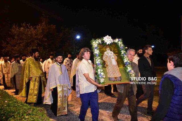 Τον πανηγυρικό εσπερινό για τον Άγιο Νεκτάριο τέλεσε ο Ιεροκήρυκας της Μητροπόλεως Αργολίδος αρχιμανδρίτης Χρυσόστομος Παπουλέσης, ο οποίος κήρυξε και τον θείο λόγο. Μετά τον εσπερινό, ακολούθησε η λιτάνευση της ιερής εικόνας καθώς και του ιερού λειψάνου του Αγίου Νεκταρίου προς ευλογία των πιστών παιανιζούσης της Δημοτικής φιλαρμονικής του δήμου Ναυπλιέων.