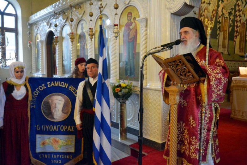 Ακόμη, κάνοντας μία σύντομη ιστορική αναφορά στα γεγονότα της απελευθέρωσης του νησιού, υπογράμμισε την ενότητα που είχαν όλοι τότε, ώστε με τη δύναμη και τη βοήθεια του Κυρίου και χάρη στον δυναμισμό και τη θυσία του Σταύρου Μπαρέτη, τον οποίο οι Σάμιοι τιμούν ως ήρωα και μάρτυρα της ελευθερίας τους, κατάφεραν να απελευθερώσουν το νησί το 1912.