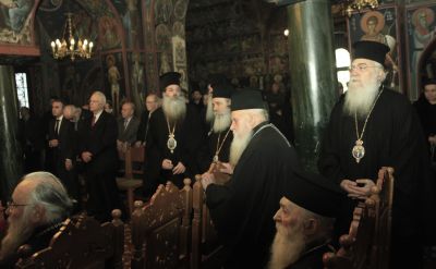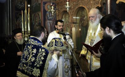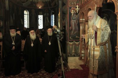 Παρέστησαν συμπροσευχόμενοι οι Μητροπολίτες Χαλκίδος Χρυσόστομος, Νέας Σμύρνης Συμεών, Μεσογαίας Νικόλαος, Γλυφάδας Παύλος, Ύδρας Εφραίμ, Λαγκαδά Ιωάννης, Κυθήρων Σεραφείμ, Θήρας Επιφάνιος, Μυτιλήνης Ιάκωβος, Κερκύρας Νεκτάριος, Ηλείας Γερμανός, Πειραιώς Σεραφείμ, Βελεστίνου Δαμασκηνός, Γουιννέας Γεώργιος και οι Επίσκοποι Μεθώνης Κλήμης, Νεοχωρίου Παύλος και Αβύδου Κύριλλος.