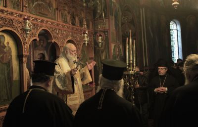 Το πρωί, στο Καθολικό της Μονής Πεντέλης τελέστηκε Συνοδική Θεία Λειτουργία από τον Μακαριώτατο Αρχιεπίσκοπος Αθηνών και πάσης Ελλάδος κ. Ιερώνυμο, συλλειτουργούντων των Μητροπολιτών Σύρου Δωροθέου και Σιατίστης Παύλου.