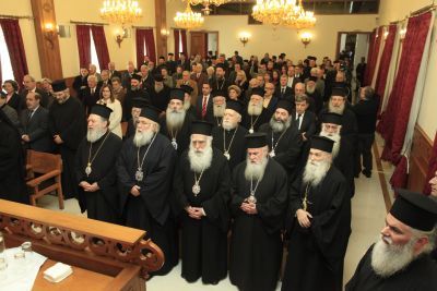 Ακολούθησε σύσκεψη μελών της Ιεράς Συνόδου με Καθηγητές των Θεολογικών Σχολών της Χώρας στην Αίθουσα τελετών του Διορθοδόξου Κέντρου της Εκκλησίας της Ελλάδος.