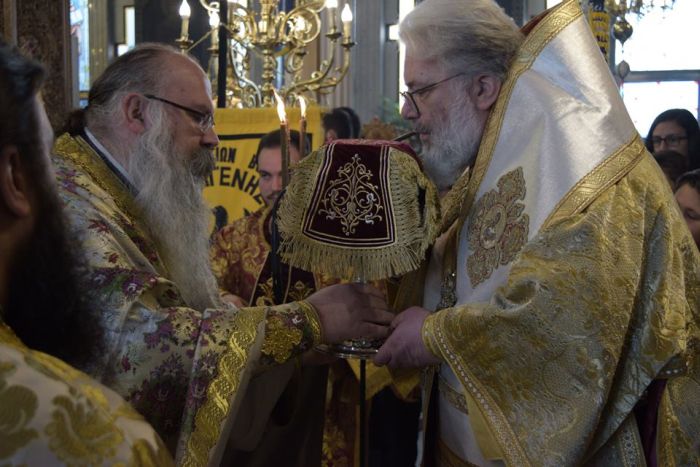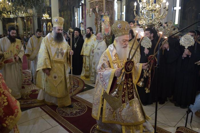 Αφ’ εσπέρας της εορτής στην ακολουθία του Πανηγυρικού Εσπερινού χοροστάτησε ο Σεβασμιώτατος Μητροπολίτης Βέροιας κ. Παντελεήμων και στην ακολουθία των Χαιρετισμών ο Σεβασμιώτατος Μητροπολίτης Ελασσώνος κ. Χαρίτων, ο όποιος και μίλησε επίκαιρα.