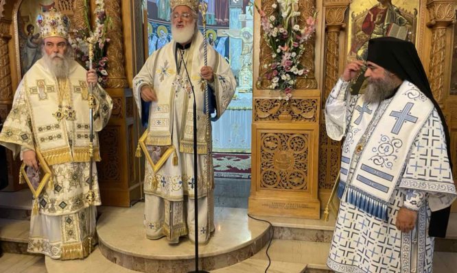 Την Κυριακή 13 Αυγούστου 2023, τελέστηκε Όρθρος και Πολυαρχιερατική Θεία Λειτουργία στον Ιερό Μητροπολιτικό Ναό, Ευαγγελισμού της Θεοτόκου στην Κίσσαμο, έμπροσθεν της Ιεράς εικόνας της Παναγίας της “Γιάτρισσας”. Στην ακολουθία του Όρθρου χοροστάτησε ο Θεοφιλέστατος Επίσκοπος Ευμενείας κ. Ειρηναίος και τις τρισαρχιερατικής Θείας Λειτουργίας πρεξήρχε ο Σεβ. Μητροπολίτης Αρκαλοχωρίου κ. Ανδρέας, μετά του Οικείου Ποιμενάρχη κ. Αμφιλοχίου και του Θεοφ. Επισκόπου Ευμενείας κ. Ειρηναίου.