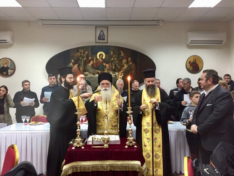Στο κατάμεστο «Αρχονταρίκι» του Ι. Ναού Αναλήψεως του Χριστού Βόλου, ο Σεβ. Μητροπολίτης Δημητριάδος κ. Ιγνάτιος ευλόγησε, την Δευτέρα 15/1, την εόρτια Βασιλόπιτα του Συνδέσμου Ιεροψαλτών «Όσιος Ιωάννης ο Κουκουζέλης» και της Σχολής Βυζ. Μουσικής της Τοπικής μας Εκκλησίας. Στην Ακολουθία έψαλε η Χορωδία της Σχολής, υπό τη δ/νση του Πρωτοψάλτου και Καθηγητού κ. Ιωάννου Σχώρη.