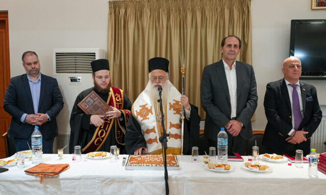 Ο Σεβασμιώτατος μετά την κοπή της βασιλόπιτας, κατά την οποία παρέστησαν οι τοπικές αρχές, εκφώνησε επίκαιρη ομιλία. Στο τέλος της εκδήλωσης ο Σεβασμιώτατος τίμησε για την διαχρονική στήριξή τους στο έργο της φιλανθρωπίας τόν πρὠην Νομάρχη κ. Ιωάννη Σπάρτση και τον Καθηγητή κ. Εμμανουήλ Κολοβό.