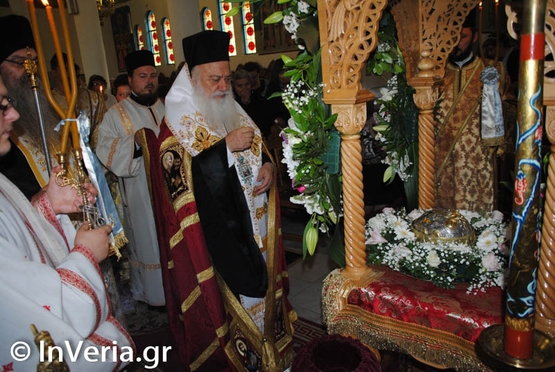 Την Κάρα της Αγίας Παρασκευής μετέφερε ο Αρχιμ, Φιλόθεος, από τη Μονή Κουτλουμουσίου, και την υποδέχτηκε ο Μητροπολίτης Βεροίας, Ναούσης και Καμπανίας κ. Παντελεήμων και πλήθος κλήρου και λαού. Στη συνέχεια ο κ. Παντελεήμων χοροστάτησε στον Εσπερινό και κήρυξε τον θείο λόγο.