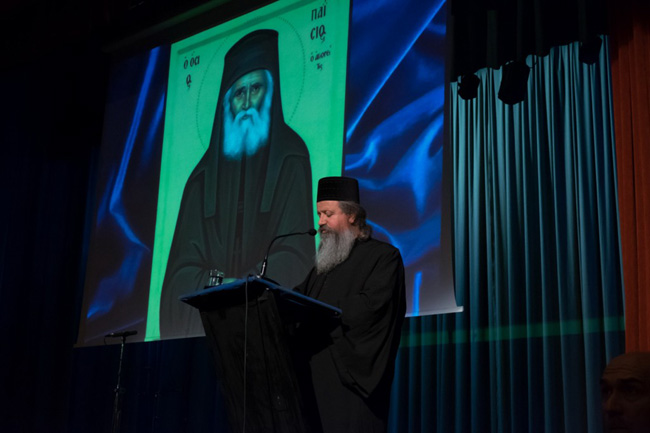 Ακολούθησε ομιλία από τον κ. Αθανάσιο Ρακοβαλή, ο οποίος αναφέρθηκε στις προσωπικές εμπειρίες του από την γνωριμία του με τον Γέροντα Παίσιο. Επεσήμανε το γεγονός ότι ο Άγιος ευωδίαζε, είχε χαρίσματα διορατικά και του έδινε πάντοτε λύσεις στα προβλήματά του. Τόνισε τα πνευματικά δώρα που αποκόμισε από τις συναντήσεις του με τον Γέροντα και ευχήθηκε η ευλογία του να μας δίνει θάρρος για τις δύσκολες μέρες που διανύουμε.