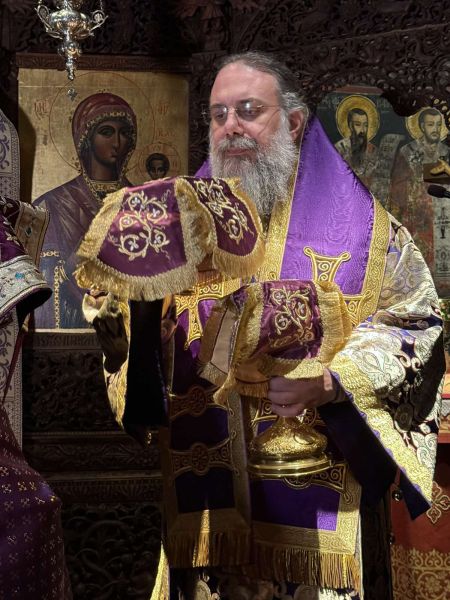 Ο Σεβασμιώτατος Μητροπολίτης Τρίκκης, Γαρδικίου και Πύλης κ. Χρυσόστομος την Καθαρά Τρίτη 4 Μαρτίου 2025 τέλεσε βραδινή Προηγιασμένη Θεία Λειτουργία στην Ιερά Μονή Κοιμήσεως Θεοτόκου Κορμπόβου, επί τη μνήμη του Οσιομάρτυρος Κόνωνος και του Νεομάρτυρος Γεωργίου του εκ Ραψάνης.