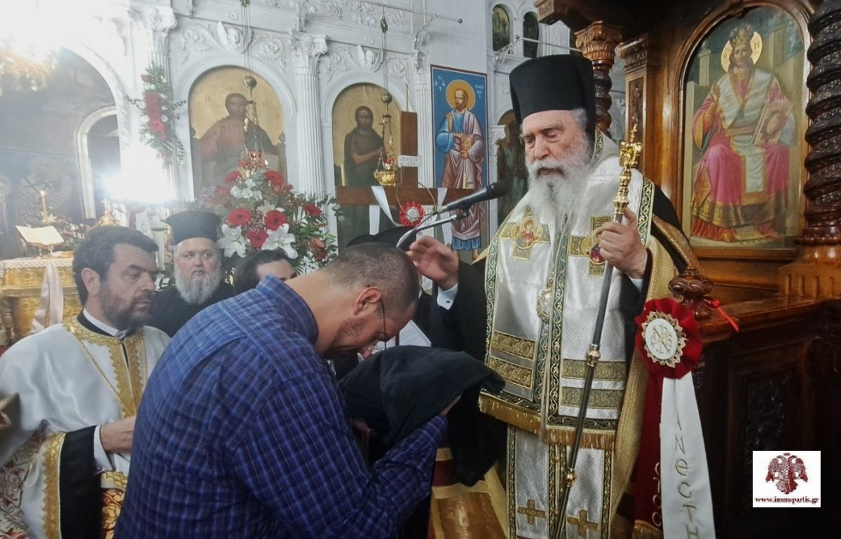 Πριν την ολοκλήρωση της εσπερινής πανηγυρικής λατρευτικής σύναξης, ο Σεβασμιώτατος χειροθέτησε Αναγνώστη έναν ευσεβή νέο της περιοχής, τον κ. Αντώνιο Μανωλάκο, κατ’ επάγγελμα αγρότη, που έχει σπουδάσει τεχνολόγος γεωπόνος. Ο Σεβ. Ποιμενάρχης μας μίλησε αρχικά για τη σημασία του οφικκίου αυτού του κατώτερου κλήρου. Ακολούθως, εκθείασε το ήθος του νέου Αναγνώστη και του ευχήθηκε να συνεχίσει, με τον ίδιο ζήλο, στον δρόμο της αρετής και της πνευματικής εξύψωσης.
