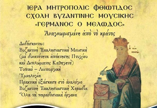 Ξεκίνησαν οι εγγραφές στη σχολή Βυζαντινής Μουσικής «Γερμανός ο Μελωδός» της Ιεράς Μητρόπολης Φθιώτιδος.