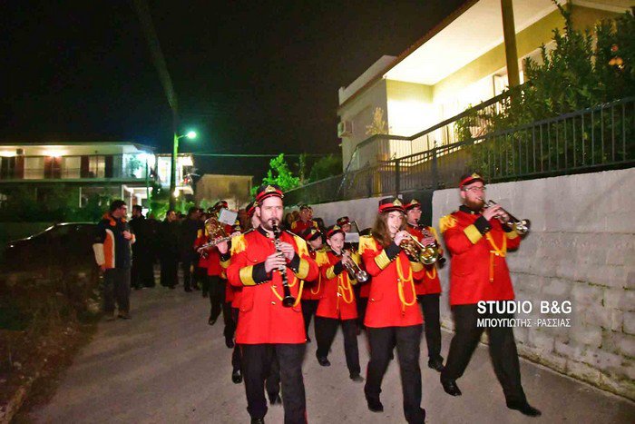 Μετά το τέλος του εσπερινού ακολούθησε η λιτάνευση της Ιερής εικόνας παιανιζούσης της Δημοτικής φιλαρμονικής Ναυπλίου.