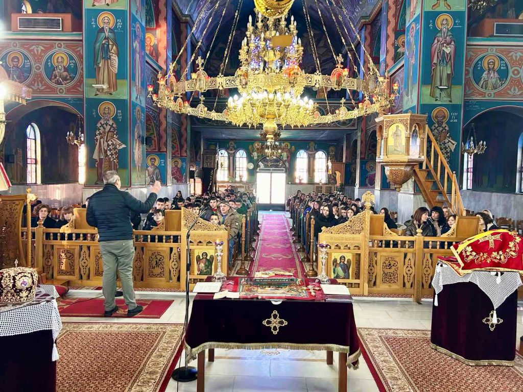 Παράλληλα, ο Σεβ. Ιγνάτιος αναφέρθηκε στις σύγχρονες προκλήσεις που αντιμετωπίζουν οι νέοι, τονίζοντας ότι η τεχνολογία και η τεχνητή νοημοσύνη μπορούν να αποτελέσουν χρήσιμα εργαλεία στη ζωή του ανθρώπου, χωρίς όμως να υποκαθιστούν την προσωπική σχέση, την αγάπη και την προσευχή. Όπως χαρακτηριστικά επεσήμανε, «δεν είναι πρόσωπα, δεν αγαπούν και δεν προσεύχονται», καλώντας τους νέους να χρησιμοποιούν την τεχνολογία με διάκριση, χωρίς να χάνουν την ελευθερία και τη ζωντανή σχέση με τον Χριστό. Ολοκληρώνοντας την ομιλία του, ο Σεβ. Ποιμενάρχης μας εξέφρασε τη χαρά του για τη λειτουργική σύναξη με τους μαθητές και τις μαθήτριες, ευχαρίστησε τους ιερείς του Ναού και τους εκπαιδευτικούς για την άρτια προετοιμασία και τη συνεργασία, και ευχήθηκε στους νέους να πορεύονται στη ζωή τους «με πίστη, αγάπη και αλήθεια».