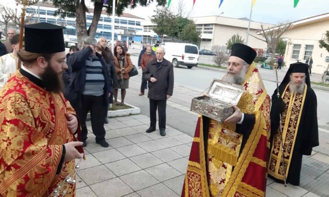 Με ευσέβεια και κατάνυξη οι κάτοικοι των Τρικάλων υποδέχτηκαν το Σάββατο 24 Φεβρουαρίου 2024 το απόγευμα τη Δεξιά Χείρα του Αγίου Νεομάρτυρος Νικόλαου του εκ Μετσόβου.