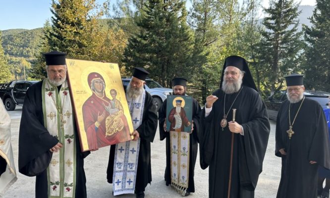 Υποδοχή Ιεράς Εικόνος Παναγίας «ΧΑΙΡΕ ΑΜΝΟΥ ΚΑΙ ΠΟΙΜΕΝΟΣ ΜΗΤΗΡ» στα Τρίκαλα (ΦΩΤΟ)