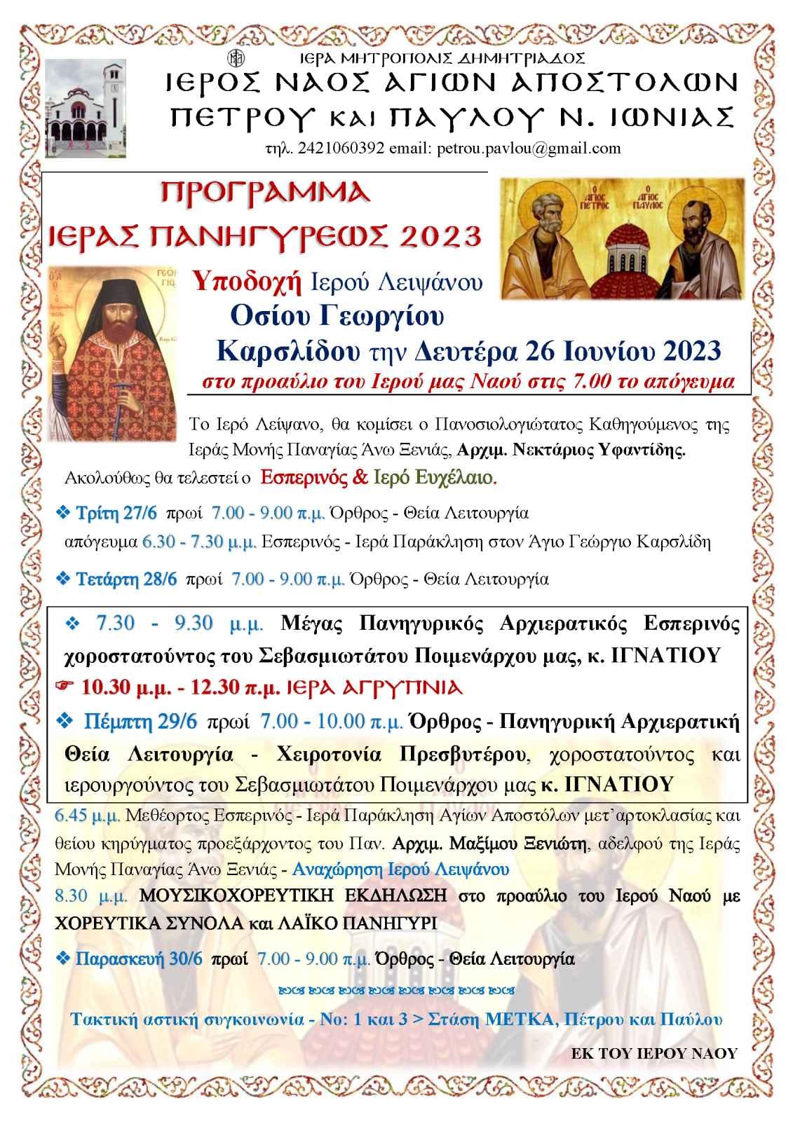 Ολόκληρο το πρόγραμμα της Ιεράς Πανηγύρεως δημοσιεύεται στην ιστοσελίδα της Ιεράς Μητροπόλεως Δημητριάδος imd.gr