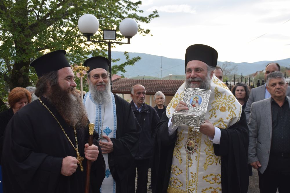 Την Τετάρτη της Διακαινησίμου 19 Απριλίου 2023 το απόγευμα ο Σεβασμιώτατος Μητροπολίτης Τρίκκης, Γαρδικίου και Πύλης κ. Χρυσόστομος υποδέχθηκε στον αύλειο χώρο του Ιερού Ναού Αγίου Νικολάου Γριζάνου Τρικάλων απότμημα Ιερού Λειψάνου του Αγίου Ενδόξου Μεγαλομάρτυρος Γεωργίου του Τροπαιοφόρου.