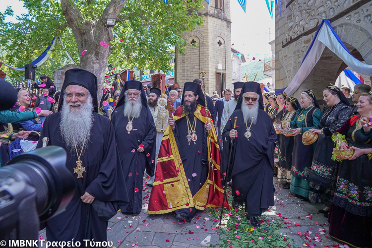 Ακολούθησε λιτανευτική πομπή προς την κεντρική πλατεία της πόλης και τον Ιερό Ναό Αγίου Γεωργίου όπου έγινε η τελετή της ενθρονίσεως. Μίλησαν ο Σεβ. Μητροπολίτης Καστορίας Κ. Σεραφείμ, ο προϊστάμενος της ενορίας Αρχιμ. Νικόλαος Αλεξίου καθώς και ο Σεβασμιώτατος Μητροπολίτης Σισανίου κ. Αθανάσιος.