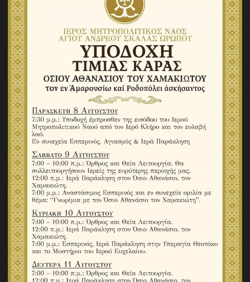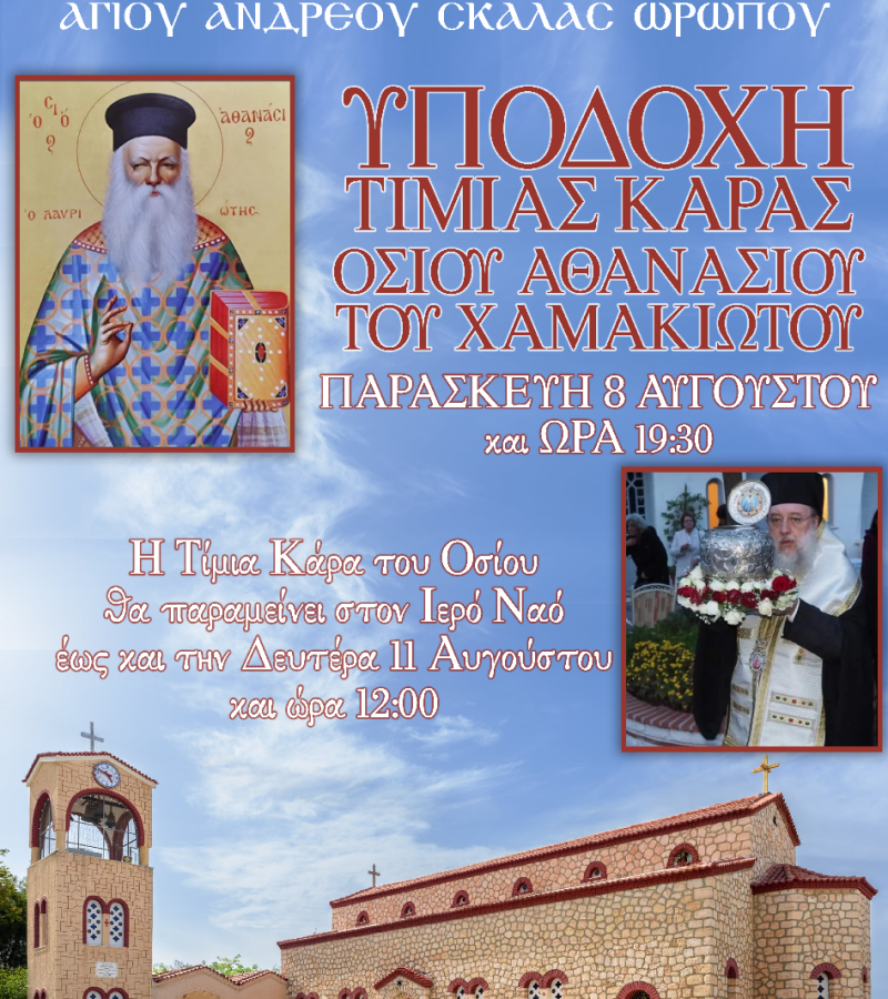 Υποδοχή Τιμίας Κάρας Οσίου Αθανασίου του εν Αμαρουσίω στον Ωρωπό Δόγμα 01 Αυγούστου 2025 15:34 Tags: ΜΗΤΡΟΠΟΛΗ ΚΗΦΙΣΙΑΣ