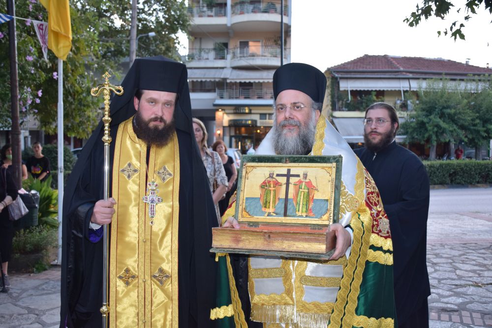 Με ευσέβεια και κατάνυξη οι κάτοικοι των Τρικάλων, υποδέχτηκαν την Κυριακή 11 Σεπτεμβρίου 2022 το απόγευμα τεμάχιο του Τιμίου και Ζωοποιού Σταυρού και Ιερών Λειψάνων των Αγίων Κωνσταντίνου και Ελένης εκ της Ιεράς Μονής Τουρλιανής της Ιεράς Μητροπόλεως Σύρου.