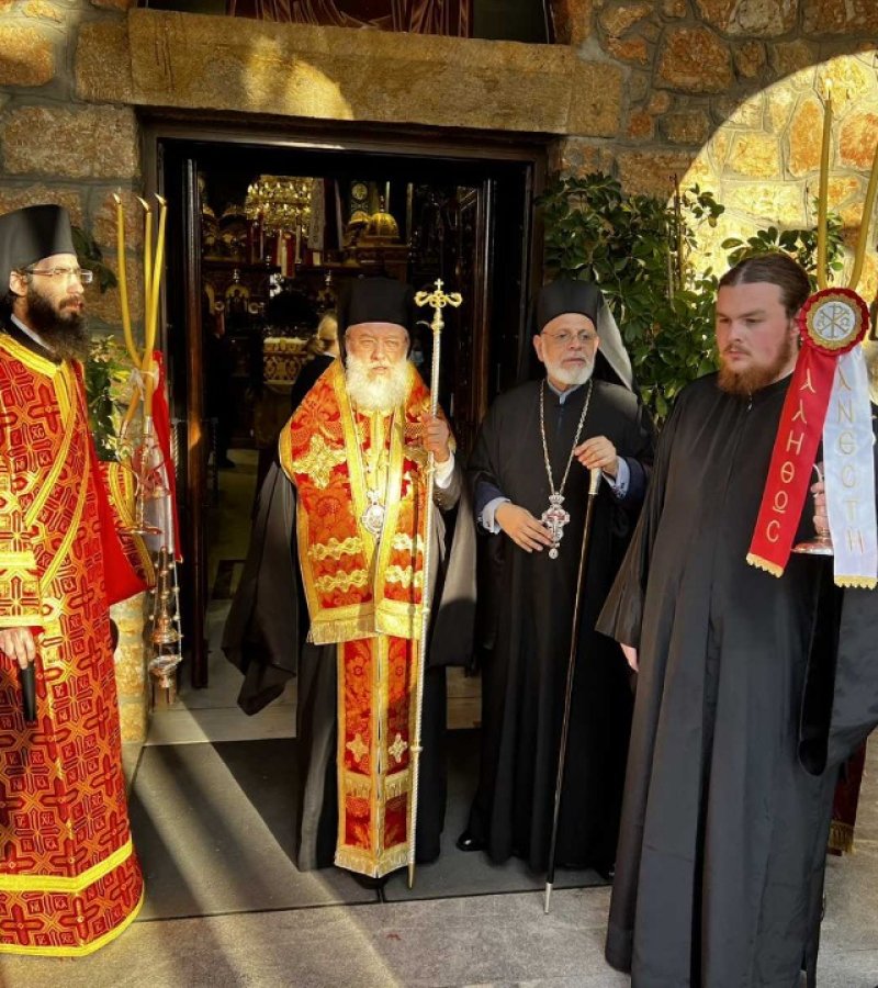 Το Ιερό σέβασμα μετέφερε τριμελής αντιπροσωπία της Ιεράς Μονής. Στην προσφώνησή του αναφέρθηκε τόσο στα δύο μεγάλα γεγονότα που εορτάζονται την σημερινή μεγάλη ημέρα και στον βίο του Μεγαλομάρτυρος Γεωργίου.