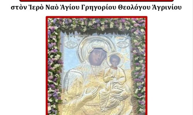 Την Παρασκευή 24 Ιανουαρίου 2025 και ώρα 6:00 το απόγευμα στα προπύλαια του Ιερού Ναού Αγίου Γρηγορίου Θεολόγου Αγρινίου θα πραγματοποιηθεί η επίσημη υποδοχή της Ιεράς και Θαυματουργού Εικόνος της Παναγίας Δαμάστας εκ της ομωνύμου Ιεράς Μονής της Λαμίας της Ιεράς Μητροπόλεως Φθιώτιδος από τον Σεβασμιώτατο Μητροπολίτη Αιτωλίας και Ακαρνανίας κ. κ. Δαμασκηνό, τον Ιερό Κλήρο και τις Αρχές της πόλεως.