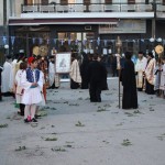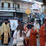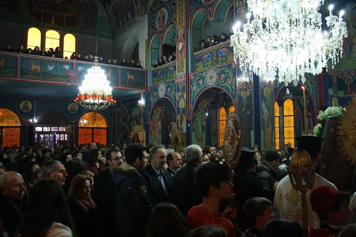 Σχηματίσθηκε πομπή η οποία κατευθύνθηκε προς τον Ιερό Ναό, όπου τελέσθηκε Δοξολογία επί τη αφίξει της Ιεράς Εικόνος και Αρχιερατικός Εσπερινός.