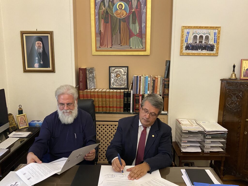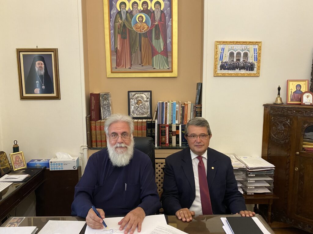 Σύμφωνο συνεργασίας μεταξύ της Σχολής Κλασικών και Ανθρωπιστικών Σπουδών του Δημοκριτείου Πανεπιστημίου Θράκης και του Ιδρύματος Ποιμαντικής Επιμορφώσεως της Ιεράς Αρχιεπισκοπής Αθηνών υπογράφηκε σήμερα στην Αθήνα, ημέρα Δευτέρα 3 Οκτωβρίου 2022 από τον Κοσμήτορα της Σχολής Κλασικών και Ανθρωπιστικών Σπουδών του Δημοκρίτειου Πανεπιστημίου Θράκης, Καθηγητή κ. Εμμανουήλ Βαρβούνη και τον Αν. Πρόεδρο του Δ.Σ. ΤΟΥ Ι.Π.Ε. Σεβασμιώτατο Μητροπολίτη Ιλίου, Αχαρνών και Πετρουπόλεως κ. Αθηναγόρα. Παρών στην υπογραφή ήταν και ο Αρχιμανδρίτης Θεολόγος Αλεξανδράκης, Διευθυντής του Ι.Π.Ε.