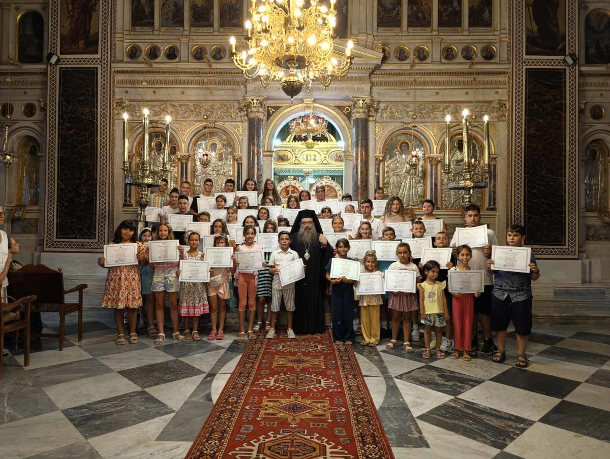Ἐν συνεχείᾳ ἐκάλεσε ἑκατοντάδες μαθητές καί μαθήτριες τῶν Κατηχητικῶν Σχολείων τῆς Ἱερᾶς Μητροπόλεως, οἱ ὁποῖοι ἀρίστευσαν στά σχολικά μαθήματα τοῦ σχολικοῦ ἔτους 2022-2023 καί τούς ἐπέδωσε ΕΠΑΙΝΟΥΣ ΑΡΙΣΤΕΙΑΣ μαζί μέ τίς πατρικές του εὐχές.