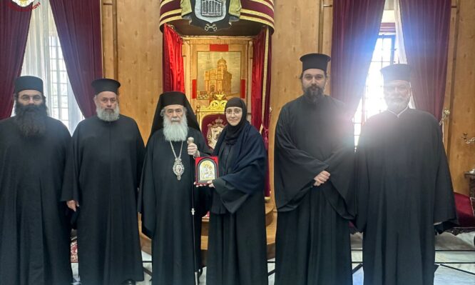 δ. Τήν Ἡγουμένην τῆς Ἱερᾶς Μονῆς Ἁγίου Εὐθυμίου Παλαιᾶς Πόλεως Ἱεροσολύμων μοναχήν Σάρραν, μετονομασθεῖσαν εἰς Φωτεινήν κατά τήν πρόσφατον κουράν αὐτῆς καί ηὐλόγησεν αὐτήν καί ἀπηύθυνεν εἰς αὐτήν Πατρικούς λόγους.