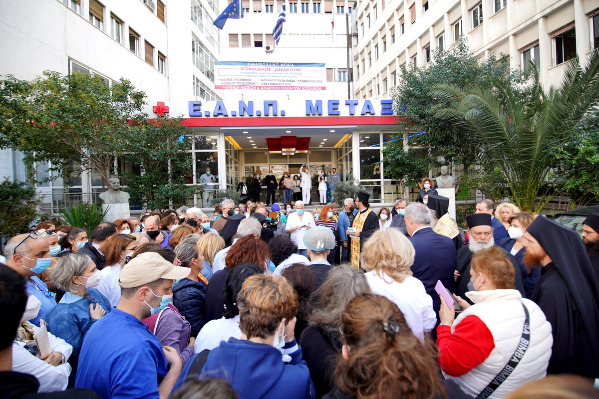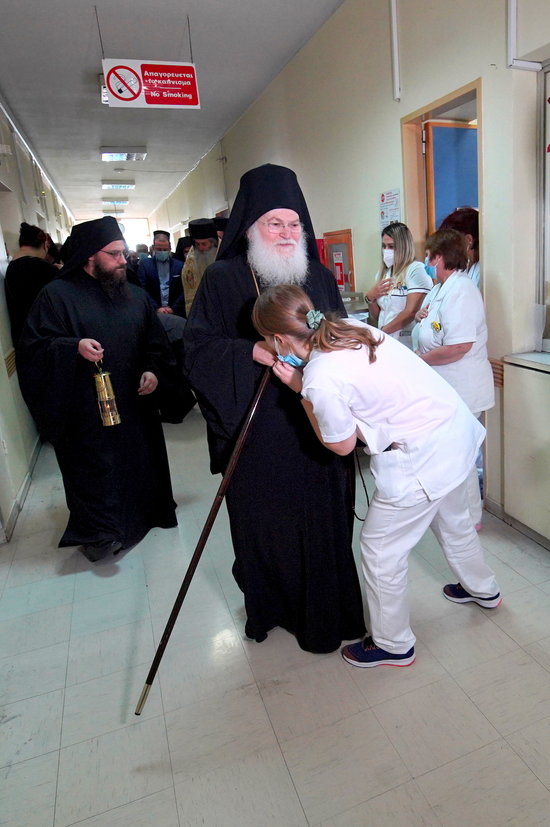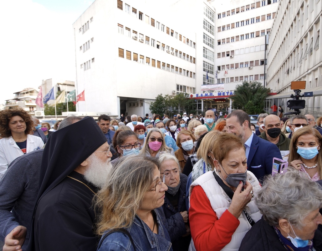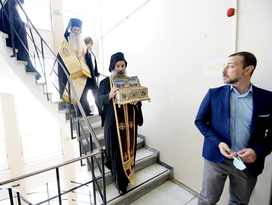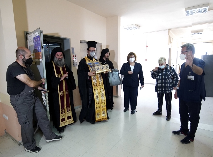 Εκατοντάδες ασθενείς και εργαζόμενοι είχαν την ευκαιρία να προσκυνήσουν το Ιερό Κειμήλιο της Ορθοδοξίας, που βγαίνει για πρώτη φορά μετά την πανδημία από το Άγιο Όρος.