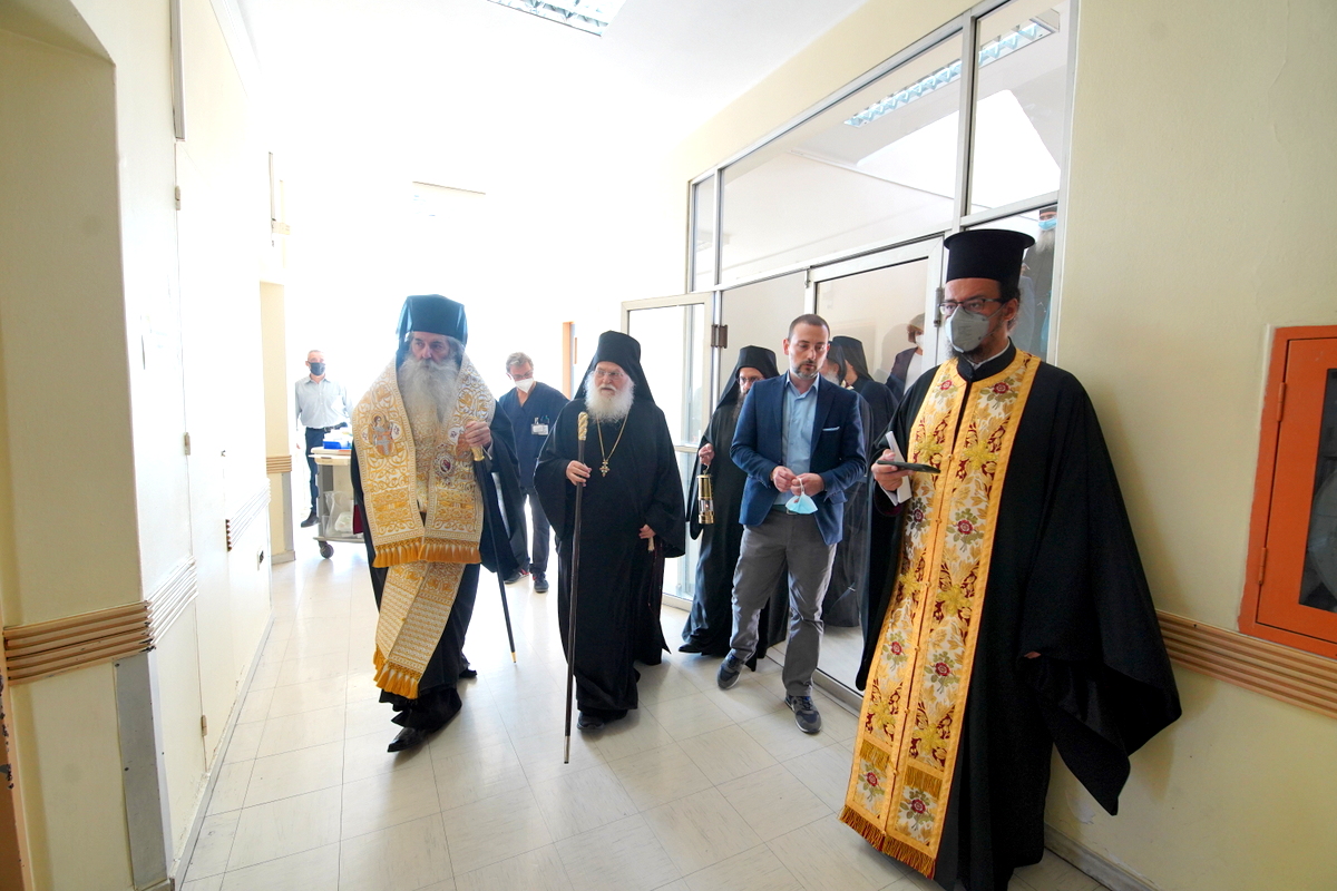 Ακολούθως, οι κ.κ. Σεραφείμ και Εφραίμ με τη συνοδεία τους, περιέφεραν στους θαλάμους των ασθενών το άγιο θησαύρισμα της Παναγίας, υπό τους ήχους του Παρακλητικούς Κανόνα της Παναγίας.