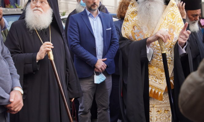 Εκεί έγινε και η πρώτη στάση για προσκύνηση από τους παρευρισκόμενους.