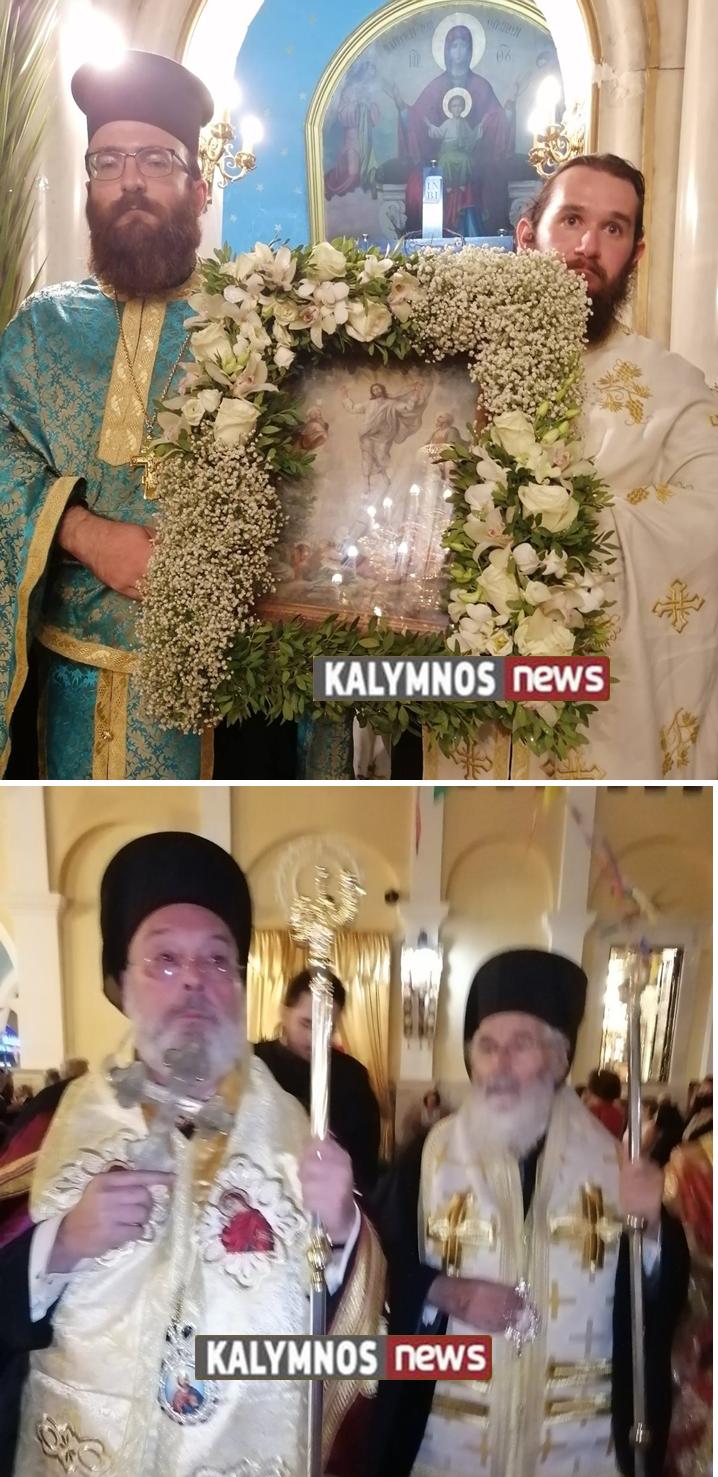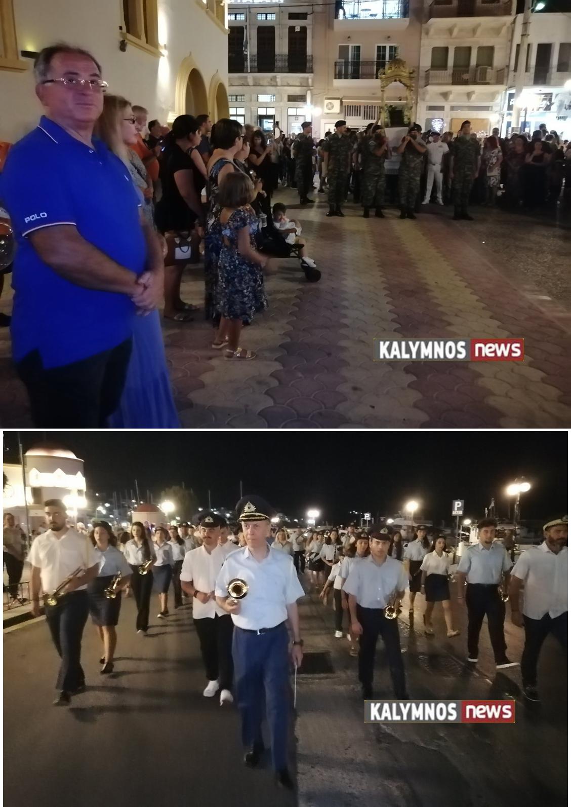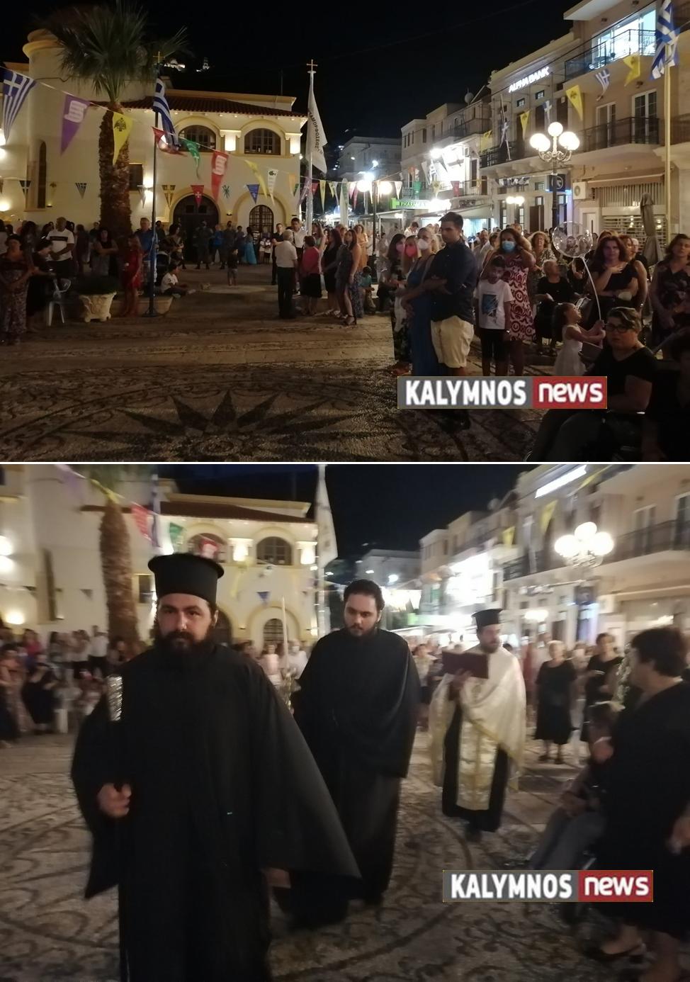 Μετά το πέρας του Εσπερινού, και ώρα 9:15΄το βράδυ , ακολούθησε η λιτανεία της Ιεράς Εικόνος της Μεταμορφώσεως στην κεντρική πλατεία του νησιού, με την συνοδεία τιμητικού αγήματος του 5/42 ΣΕ, της Δημοτικής Φιλαρμονικής, του Ιερού Κλήρου, των Αρχών και του ευσεβούς Καλυμνιακού λαού.