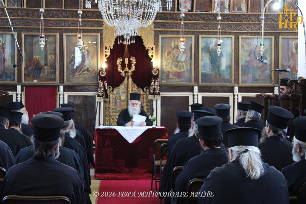 Τη Δευτέρα 30 Μαρτίου 2026, το πρωί, πραγματοποιήθηκε προπασχάλια Ιερατική Σύναξη των Κληρικών της Ιεράς Μητροπόλεως Άρτης, στον Ιερό Ναό Εισοδίων της Θεοτόκου – Αγίου Μερκουρίου, στο Επισκοπείο Άρτης.