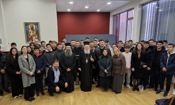 Στο Πολιτιστικό-Πνευματικό Κέντρο της Ιεράς Μητροπόλεως Χαλκίδος, υποδέχθηκε ο Σεβασμιώτατος Ποιμενάρχης μας, Μητροπολίτης Χαλκίδος κ. Χρυσόστομος τους μαθητές, τις μαθήτριες και τους υπευθύνους συνοδούς τους αρχιμ. Γερβάσιο Παρακεντέ, υπεύθυνο της Εκκλησιαστικής Εστίας Πατρών και Εκπαιδευτικούς του Λυκείου.