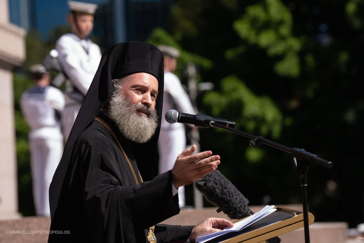 Προ της παρελάσεως, στο Μνημείο ANZAC Memorial, στο Hyde Park, τελέστηκε Επιμνημόσυνη Δέηση, υπό του Σεβασμιωτάτου Αρχιεπισκόπου Αυστραλίας κ.κ. Μακαρίου, με την τιμητική παρουσία του Πρωθυπουργού της Αυστραλίας κ. Anthony Albanese και τετραμελούς Αντιπροσωπείας της Βουλής των Ελλήνων, αποτελουμένης υπό των Βουλευτών κ.κ. Μαξίμου Χαρακόπουλου, Φιλίππου Φόρτωμα, Σταύρου Μιχαηλίδη και Κωνσταντίνου Μπάρκα. Μετά την Επιμνημόσυνη Δέηση, πραγματοποιήθηκε κατάθεση στεφάνων προς απότιση φόρου τιμής, σεβασμού και ευγνωμοσύνης προς τους Ήρωες της Ελληνικής Παλιγγενεσίας, ενώ, στο τέλος, εκφωνήθηκαν ομιλίες από τον Αρχιεπίσκοπο κ.κ. Μακάριο και τον Πρωθυπουργό κ. Albanese. Ο Σεβασμιώτατος τόνισε την αξία της διατηρήσεως της ιστορικής μνήμης, αλλά και την ευθύνη της διαφυλάξεως της εθνικής ταυτότητας, της ορθοδόξου πίστεως και των ιδανικών, από τα οποία εμπνέονταν οι πρόγονοί μας.